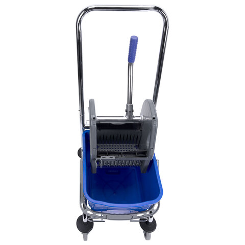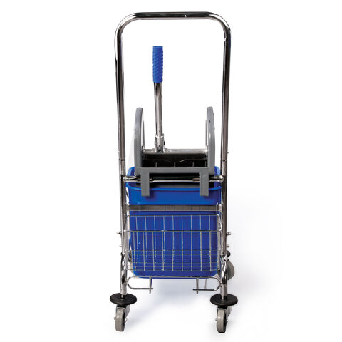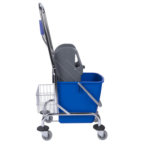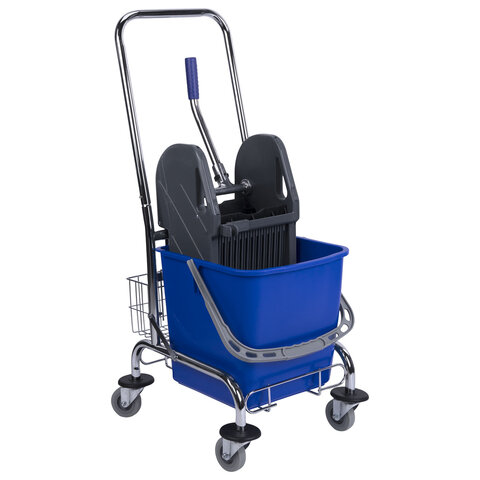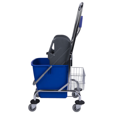 Купить Тележка уборочная BRABIX, 1 съемное ведро 25 л, механический отжим, корзина, металлический каркас, синяя, 601498 вы можете в компании Канцтовары Карандашов, оформив заказ в интернет магазине, или